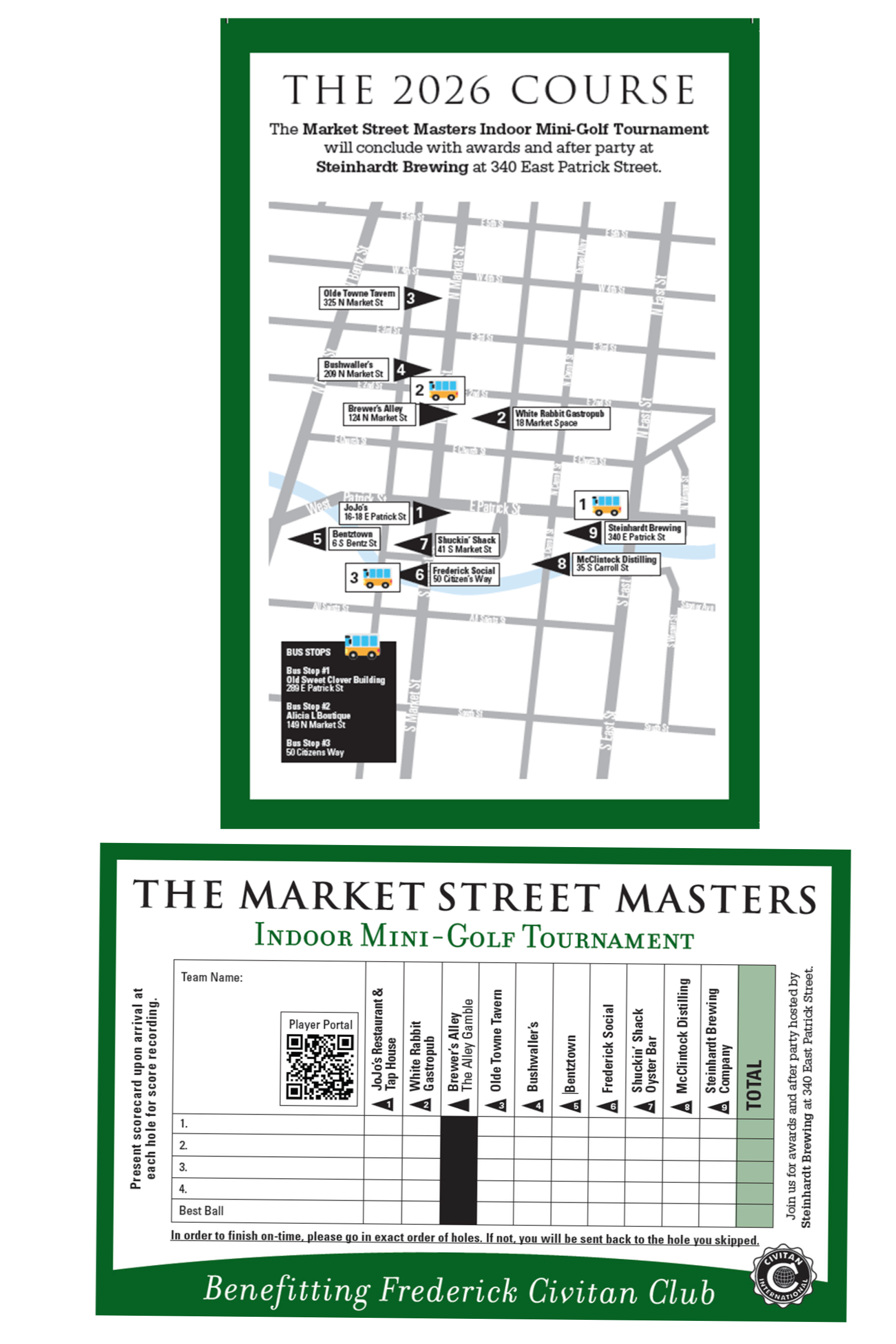 Their support makes the tournament possible and keeps the fun flowing. As you make your way through the course, please be respectful of the establishments, their staff, and fellow patrons.